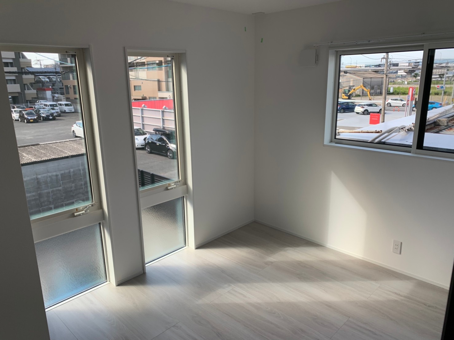 明るい大きな窓を設けたリビング、ソファーとダイニングテーブルを置いてもゆったり過ごすことができます♪